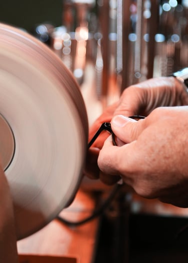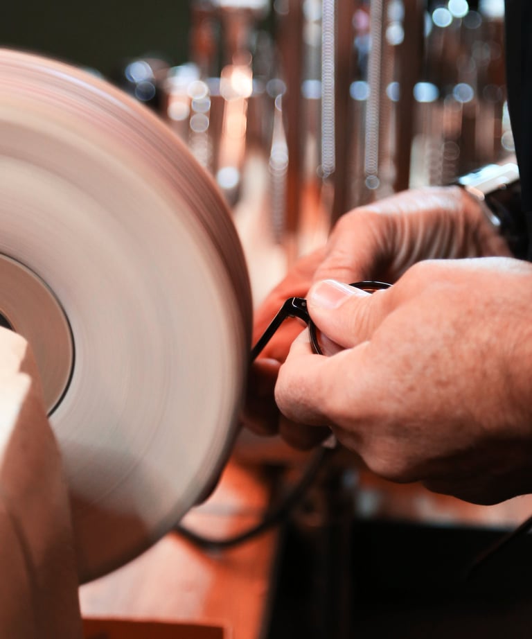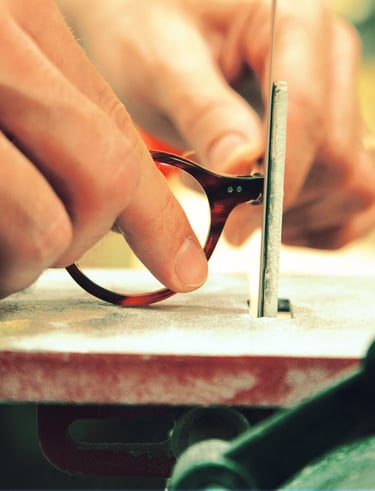 Tout est fait dans notre atelier : le détourage des verres, les réparations ainsi que les services en lunetterie.